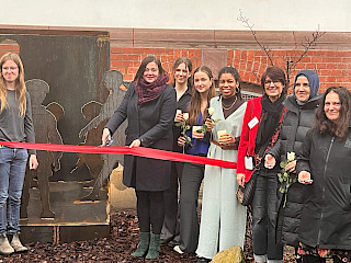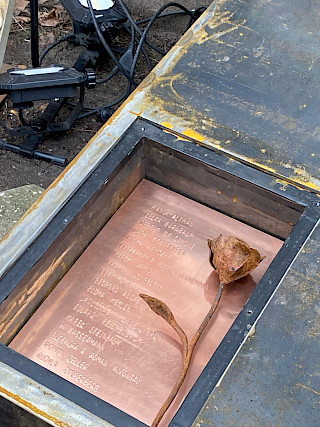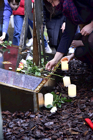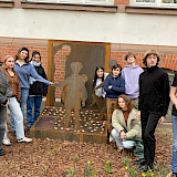 Nachem die mobile Ausstellung der Vereinigung 2022 an der Brecht-Schule zu Gast war, hatten die Schüler:innen den Wunsch, an ihrer Schule einen bleibenden Gedenkort zu schaffen, um an die 20 jüdischen Kinder zu erinnern. Für ihre intensive Auseinandersetzung mit der Geschichte der Kinder vom Bullenhuser Damm und für die Projektidee eines Mahnmals wurde die Vielfaltgruppe der Brecht-Schule mit dem Margot-Friedländer-Preis ausgezeichnet. Das Mahnmal wurde im Zeitraum eines Jahres in Workshops mit dem Bildhauer Ulf Petersen in seiner Kunstwerkstatt in Eyendorf und in der Schule erarbeit und von ihm aus Stahlplatten umgesetzt. In den Workshops haben die Schüler:innen Skizzen gezeichnet und wurden von Ulf Petersen an die künstlerische Umsetzung und den handwerklichen Umgang mit verschiedenen Materialien herangeführt.