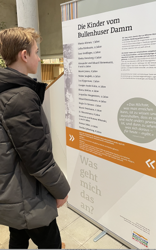 Die Ausstellung widmet sich der Geschichte der Kinder vom Bullenhuser Damm und beleuchtet die Themen Erinnerungskultur und Antisemitismus sowie den Zusammenhang mit Fake News und Verschwörungserzählungen in der heutigen Zeit. Sie richtet sich an Schulen und öffentliche Einrichtungen und verwendet einfache, verständliche Texte. Die Ausstellung bietet nicht nur Information, sondern mit offenen Fragen auf jeder Tafel auch Raum für Diskussion und Reflexion.